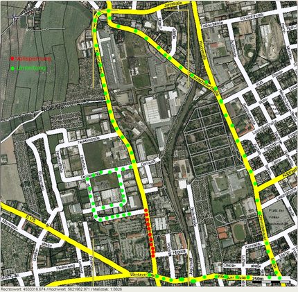Von der Kopernikusstraße aus wird der Verkehr durch das Gewerbegebiet Kopernikusstraße zum Verwaltungszentrum geführt (Tor zwischen Haus 4 und 5).