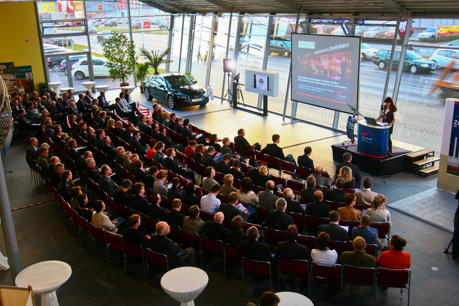 Als der renommierte Web 2.0 Experte Tjalf Nienaber gestern im Audi Zentrum seine zehn Megatrends der Zukunft vorstellte, war für der Gäste klar, dass Web 2.0 und Social Media die Unternehmen vor immer stärkere Herausforderungen stellen werden. Mehr als 200 Zwickauer Unternehmerinnen und Unternehmer waren der Einladung der Stadtverwaltung zum diesjährigen Wirtschaftsforum gefolgt. Neben bekannten IT-Unternehmen wie SAP, XING oder WE DO konnte vor allem der Zwickauer Unternehmer Jens Hertwig, Gründer und Geschäftsführer der N+P Informationssysteme mit seiner Präsentation zum rasanten Wachstum des Unternehmens begeistern.