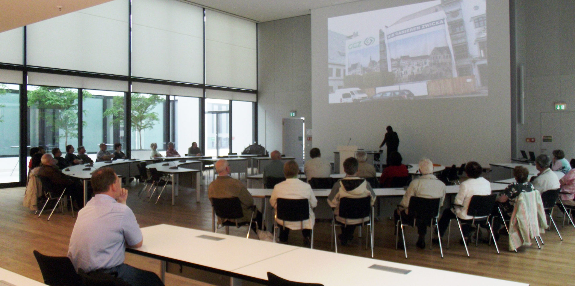 Danach stellte die Oberbürgermeisterin in einem kurzen informativen Redebeitrag wichtige Entwicklungen und Maßnahmen in den Stadtteilen Pöhlau und Äußere Dresdner Straße / Pöhlauer Straße vor.