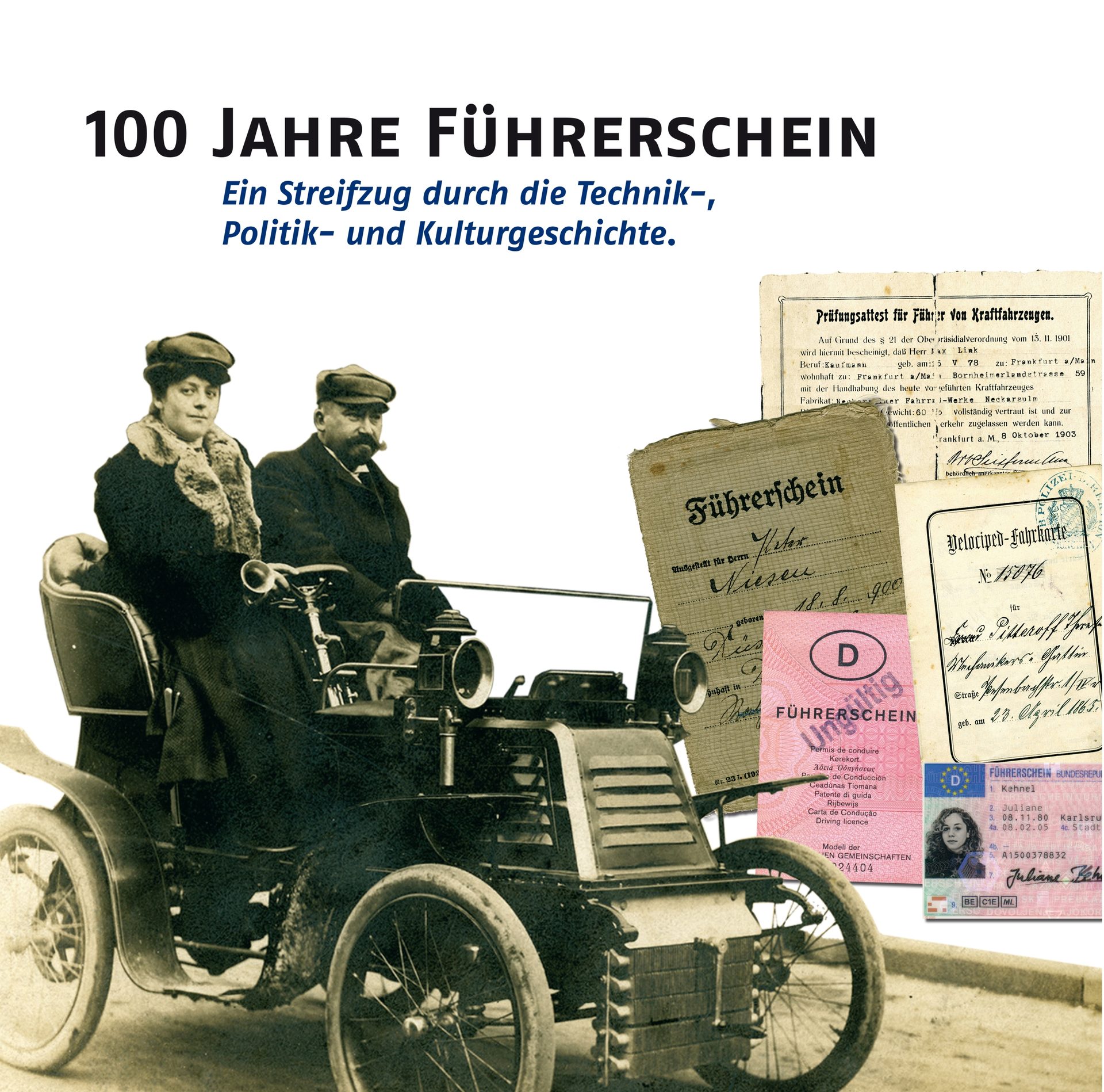 Seit 100 Jahren gibt es sie inzwischen, die landesweit gültige Fahrerlaubnis, die seit und wegen dem letzten deutschen Kaiser Wilhelm II. Führerschein heißt. Bevor der Führerschein eingeführt wurde, setzten sich Automobilisten noch mit einem „Benzin-Motorwagen-Schein", einer „Benzinkutschen-Fahrberechtigung", einem „Lenker-Attest", einem "Prüfungsattest für Explosionsmotoren" oder einer "Chauffeur-Karte" ans Steuer. Die Gültigkeit dieser Dokumente war allerdings auf einzelne Fürstentümer beschränkt und das Chaos entsprechend groß. Wer mit seinem Auto in eine benachbarte Provinz fuhr, wurde nicht selten verhaftet. So werden in dieser Sonderschau ebenso gesellschaftliche Entwicklungen beleuchtet: Noch bis 1958 beispielsweise musste eine Frau ihren Gatten um Erlaubnis bitten, wenn sie die Lizenz zum Autofahren erwerben wollte.