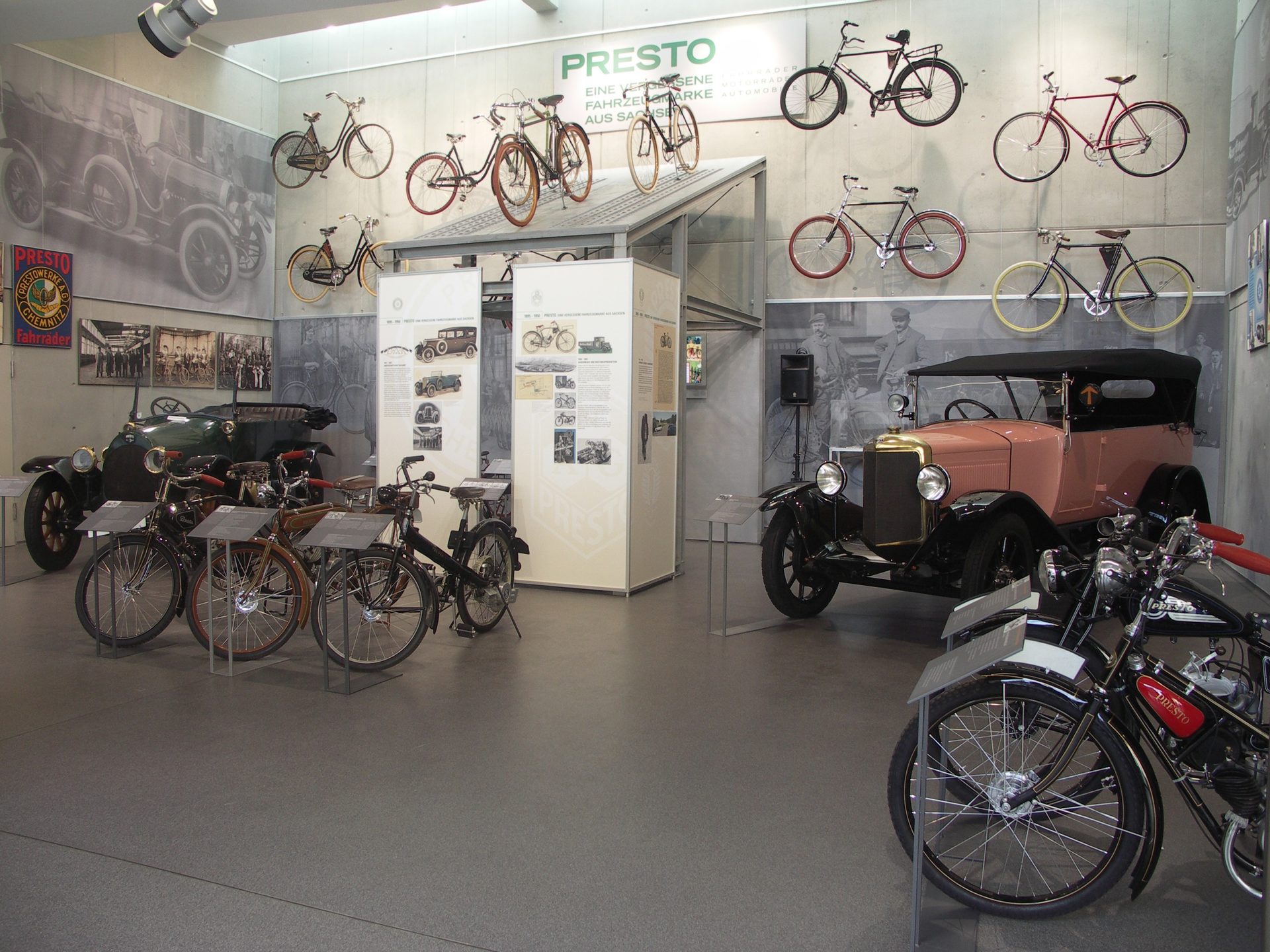 Zu den eindrucksvollen Großexponaten werden vielfältige Sporttrophäen, Bilder und Poster, seltene Artefakte der Geschichte, Werbetafeln, Blechschilder usw. rund um die Marke Presto und ihre Fahrzeuge gezeigt.