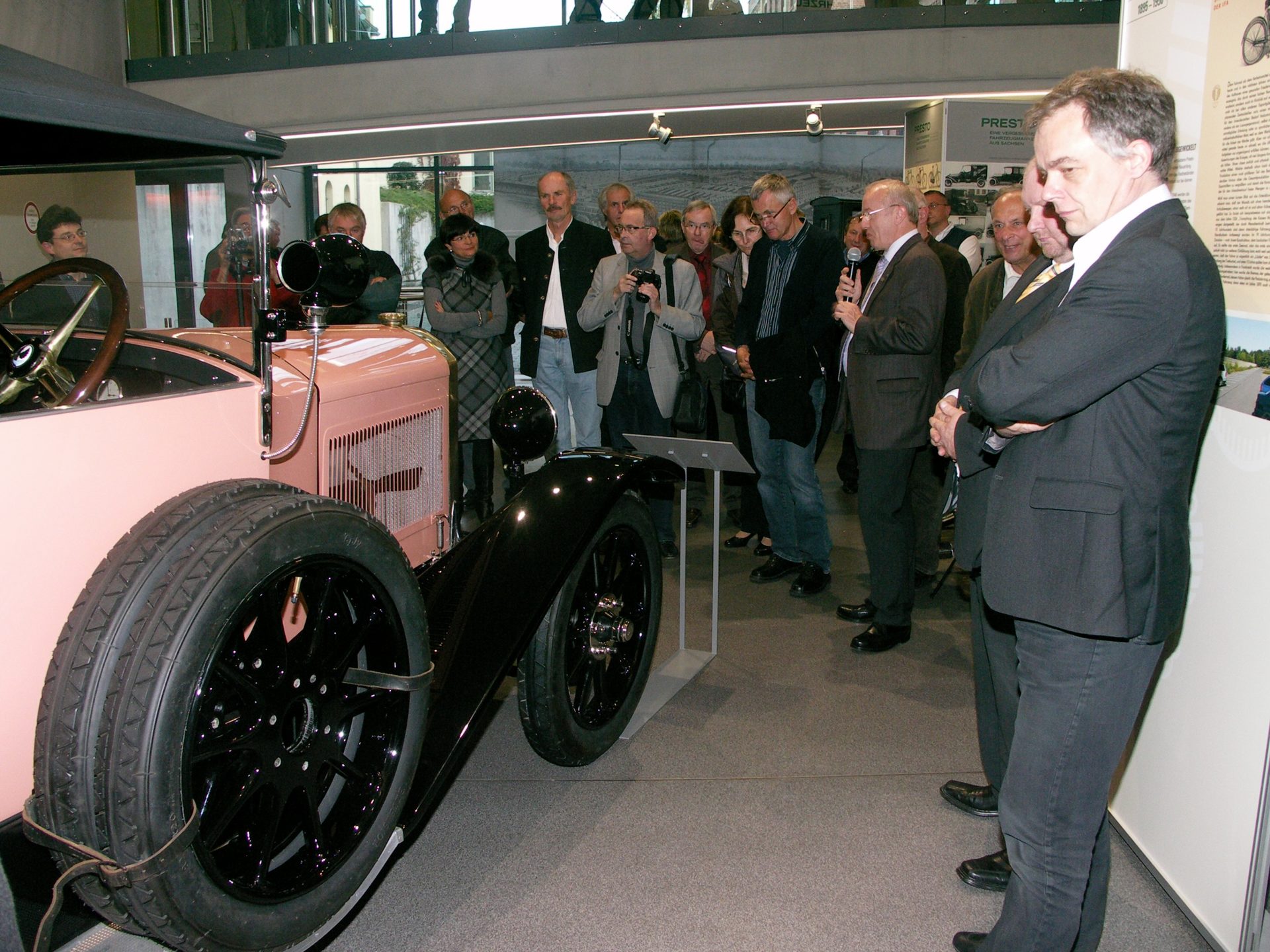 Nach einer Einführung von Prof. Dr. Peter Kirchberg in die sächsische Automobilgeschichte zeigte der Presto-Experte, -Forscher und -Sammler, Prof. Dr. Albrecht Mugler dabei den Eröffnungsgästen viele interessante Neuigkeiten aus der Geschichte des 1895 gegründeten Chemnitzer Unternehmens auf.