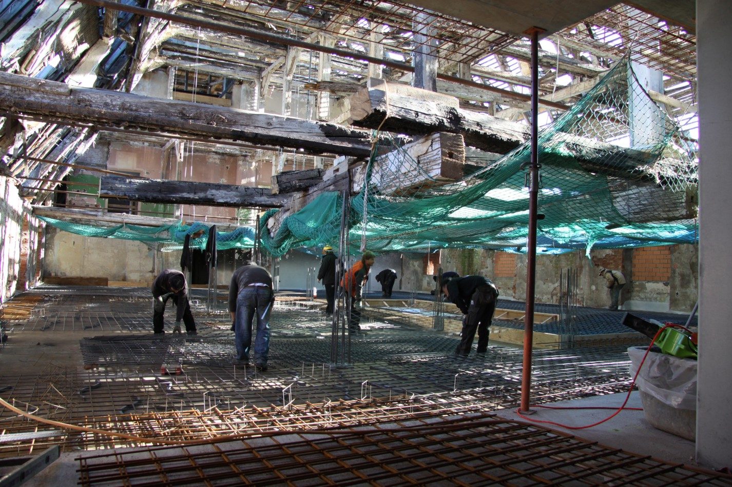Es wurden den neuen Anforderungen entsprechende 2.500 m² Betondecke eingebaut. Von der oberen Decke aus ist nun die Möglichkeit gegeben, das gesamte Dachtragewerk zu sanieren und damit für die weitere Zukunft zu erhalten.