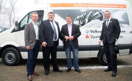 Die Volkswagen Sachsen GmbH unterstützt die Zwickauer Tafel mit 25.000 Euro bei der Anschaffung eines Volkswagen Crafter. Das Kühl-Fahrzeug ist heute im Beisein von Hans-Joachim Rothenpieler, Sprecher der Geschäftsführung der Volkswagen Sachsen GmbH, Jens Rothe, Vorsitzender des Gesamtbetriebsrats, und Sparkassenchef Paul Joachim Lemmermeyer zu seinem ersten Einsatz gestartet.