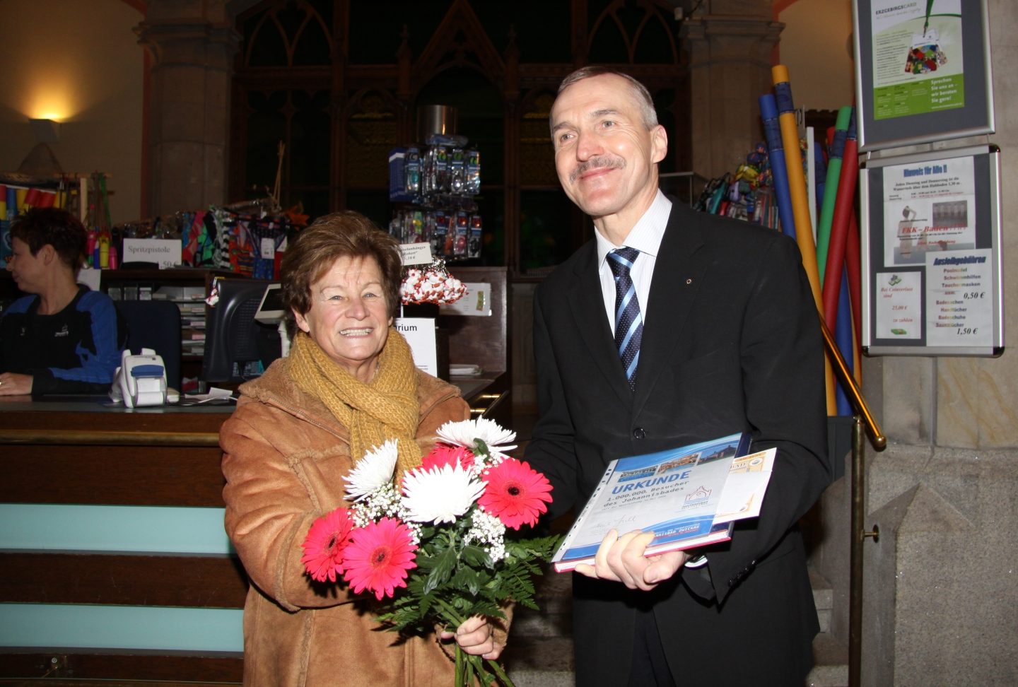 Im Johannisbad konnte heute der einmillionste Besucher seit der Wiedereröffnung des architektonischen Kleinods im Mai 2000 begrüßt werden. Der Jubiläumsgast, Annemarie Rahm aus Marienthal, erhielt von Geschäftsführer Frank Seidel einen Blumenstrauß und einen Gutschein überreicht. Seit der Eröffnung besuchen monatlich damit rund 7.100 Menschen das über 100 Jahre alte Bad. 2011 kamen insgesamt 86.196 Gäste, davon nutzten 23.191 die Sauna.