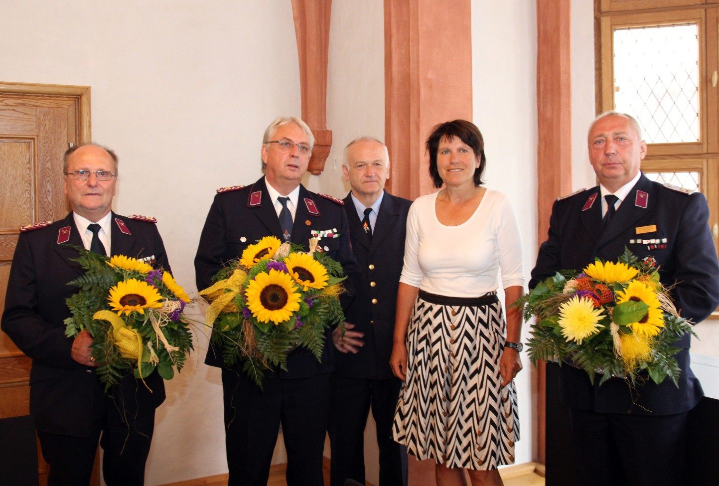 Oberbürgermeisterin Dr. Pia Findeiß hat heute im Rathaus drei besonders verdiente Feuerwehrleute empfangen: Hans-Peter Estel war im Rahmen der Delegiertenversammlung des Landesfeuerwehrverbandes mit dem Feuerwehr-Ehrenzeichen als Steckkreuz der Stufe Gold ausgezeichnet worden. In der gleichen Veranstaltung, die am 7. Juli stattgefunden hatte, waren Stephan Weidl und Joachim Paschek mit dem Ehrenzeichen in Silber geehrt worden.