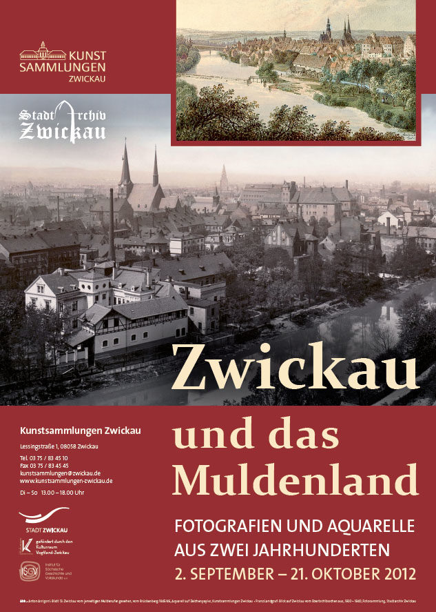 Am Mittwoch, 19. September um 18 Uhr findet in den Kunstsammlungen Zwickau eine Führung durch die Sonderausstellung „Zwickau und das Muldenland. Fotografien und Aquarelle aus zwei Jahrhunderten" statt. Im Rahmen der Gemeinschaftsausstellung mit den Kunstsammlungen lässt das Stadtarchiv rund 100 Jahre Zwickauer Stadtgeschichte durch historische Fotos und Ansichtskarten - ergänzt durch Stadtpläne - lebendig werden. Gleichzeitig werden aus den Beständen der Zwickauer Kunstsammlungen Stadtansichten und Landschaften des Muldenlandes präsentiert.