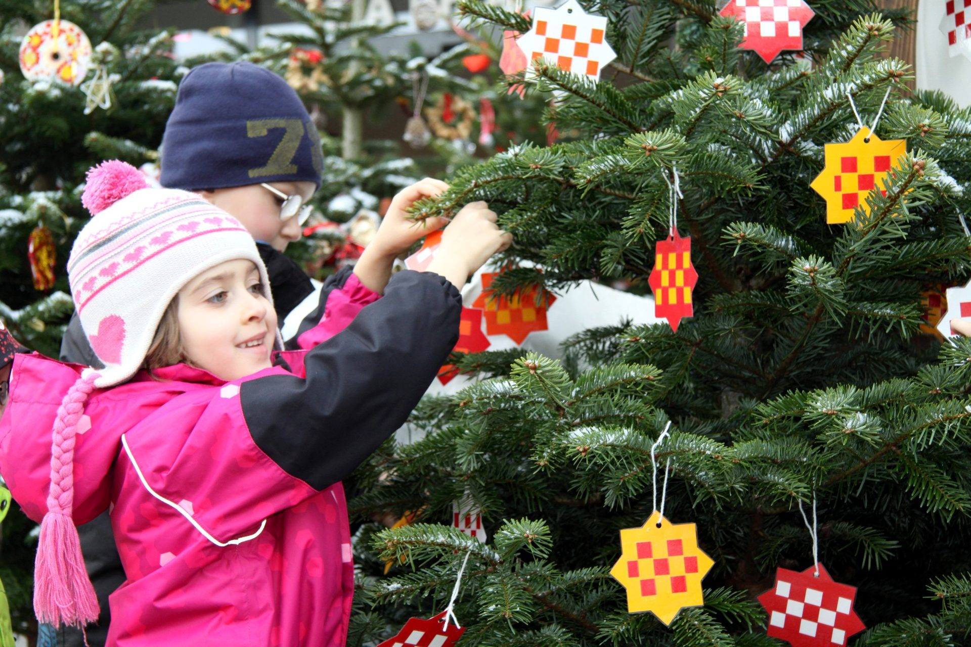 Den letzten dieser Bäume dekorierten am heutigen Mittwoch, 5. Dezember 2012 sechs Kinder der Kindertageseinrichtung Gutwasserstraße. Die kleinen Weihnachtsdekorateure bastelten in den vergangenen Tagen jede Menge bunt gewebter Papiersterne, die nun im frischen Tannengrün prächtig hervorstechen.