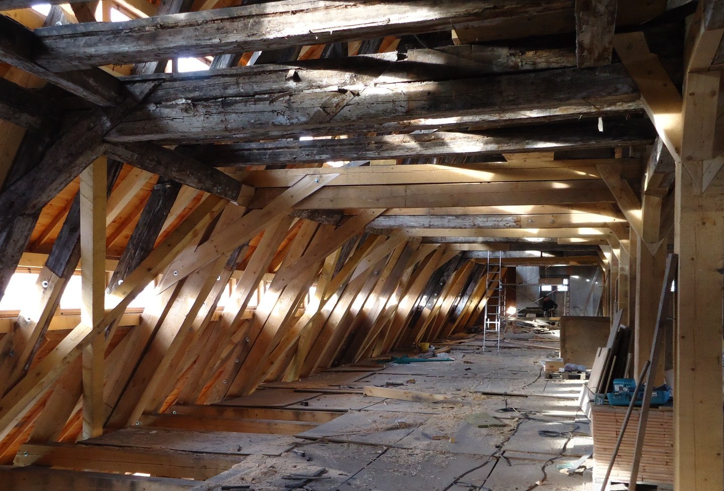 Im Inneren ist die Sanierung des Dachstuhles deutlich zu erkennen.