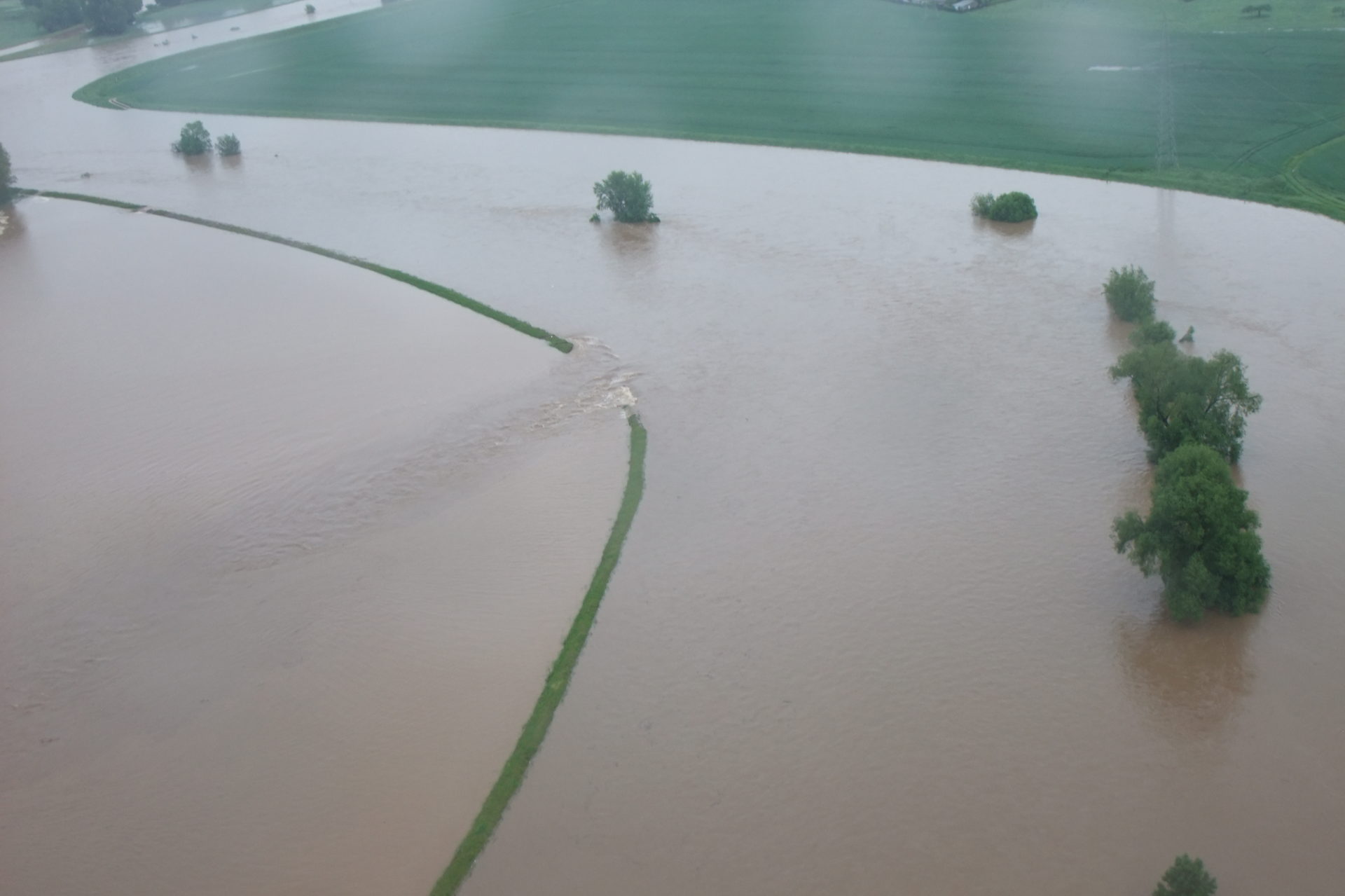 - 10 Uhr: Pegelstand 280 cm, Alarmstufe 1, vorsorglich werden 3.500 Sandsäcke befüllt, amtliche Unwetterwarnung vor ergiebigem Dauerregen bis Sonntag, 2. Juni, 6 Uhr
