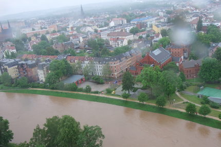 - 19.30 Uhr: Pegelstand in Pölbitz: 471 cm, Lagebesprechung mit dem Staatsminister für Umwelt und Landwirtschaft Frank Kupfer und der Landestalsperrenverwaltung Sachsen