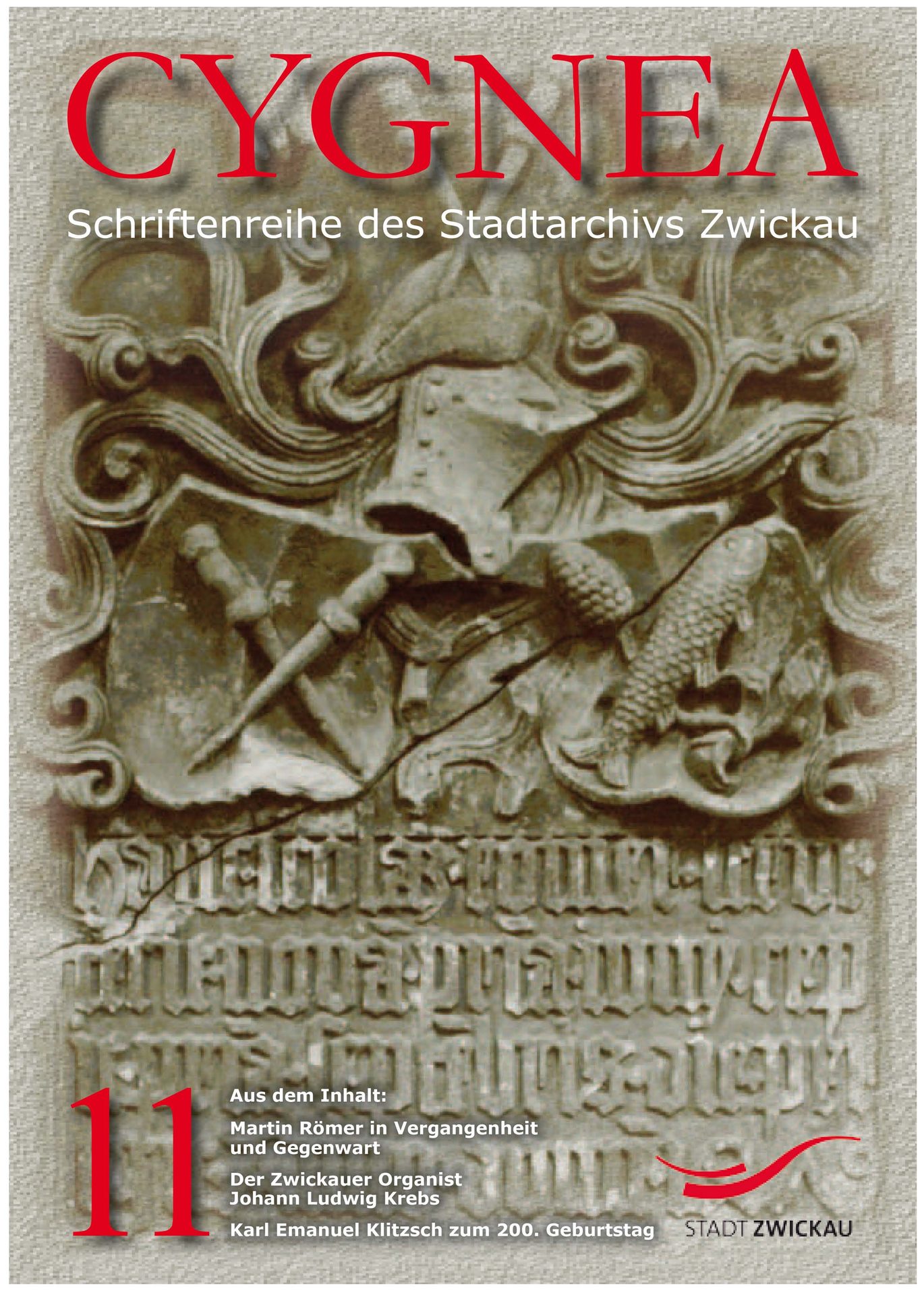 Im Mittelpunkt des Heftes stehen mehr oder weniger bekannte Persönlichkeiten und Jubilare der Zwickauer Stadtgeschichte. Der Hauptbeitrag beschäftigt sich dabei mit der Person Martin Römers, dem reichsten Bürger Sachsens im ausgehenden Mittelalter. Weitere Aufsätze handeln vom Schumann-Freund Karl Emanuel Klitzsch zu dessen 200. Geburtstag, vom Bachschüler und späteren Domorganisten Johann Ludwig Krebs anlässlich seines 300. Geburtstages sowie vom ersten Landtagsabgeordneten Zwickaus Dr. Carl Christian Ernst Richter. Beiträge zu dem Handstreich des Rittmeisters von Colomb im antinapoleonischen Befreiungskrieg sowie zum 100. Geburtstag von Gert Fröbe komplettieren Cygnea 11.