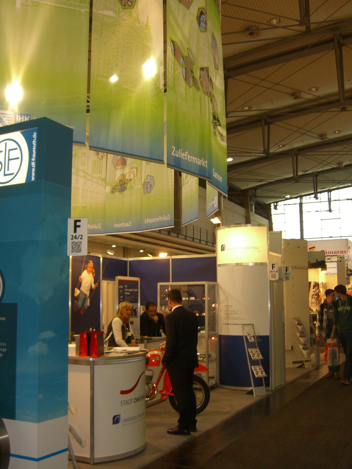 Überzeugt hat ebenfalls das neue Erscheinungsbild des gemeinsamen Auftretens von Stadt und Landkreis Zwickau. Unter dem Slogan „Motor sächsischer Wirtschaft" informierten die Wirtschaftsförderungen über den Wirtschaftsstandort Zwickau sowohl wirtschaftlich als auch touristisch. Es war bemerkenswert, wie viele Menschen Zwickau kennen oder geschäftliche und familiäre Beziehungen nach Westsachsen hatten bzw. haben.