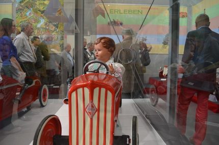 Leihgeber ist vor allem die LOPESA Sammlungs GmbH. Deren „Historische Kinderfahrzeuge" - dauerhaft im Depot Pohl-Ströher/ Gelenau ausgestellt und zu Schautagen zu besichtigen - ging erstmals auf große Reise. Aus dem Bestand von über 80 Fahrzeugen wurden 18 Highlights für die Sonderausstellung ausgewählt. Zu sehen sind vorrangig sächsische und mitteldeutsche Exponate. Ergänzt auf 21 Exponate aus dem Bestand des Museums ergeben sie einen Überblick von den Anfängen um 1860 bis in die Gegenwart. Neben Tretautos namhafter Hersteller Deutschlands und Eigenbauten sind auch frühe Stücke aus Frankreich und Italien vertreten. Holländer, Ziegenkutsche und Wipproller ergänzen die Präsentation der Kinderfahrzeuge.