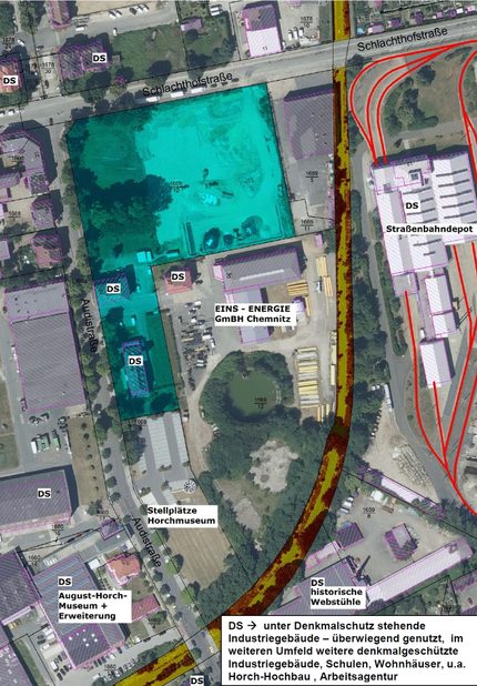 Das vorgeschlagene Gelände mit einer Größe von 16.400 qm wurde aus insgesamt neun in Frage stehenden Arealen ausgewählt. Auf dem Areal, das sich derzeit im Eigentum der Zwickauer Energieversorgung GmbH befindet, befinden sich zwei denkmalgeschützte Gebäude. Ansonsten ist es nach erfolgtem Rückbau ehemaliger Anlagen unbebaut, weitestgehend altlastensaniert und kurzfristig verfügbar.