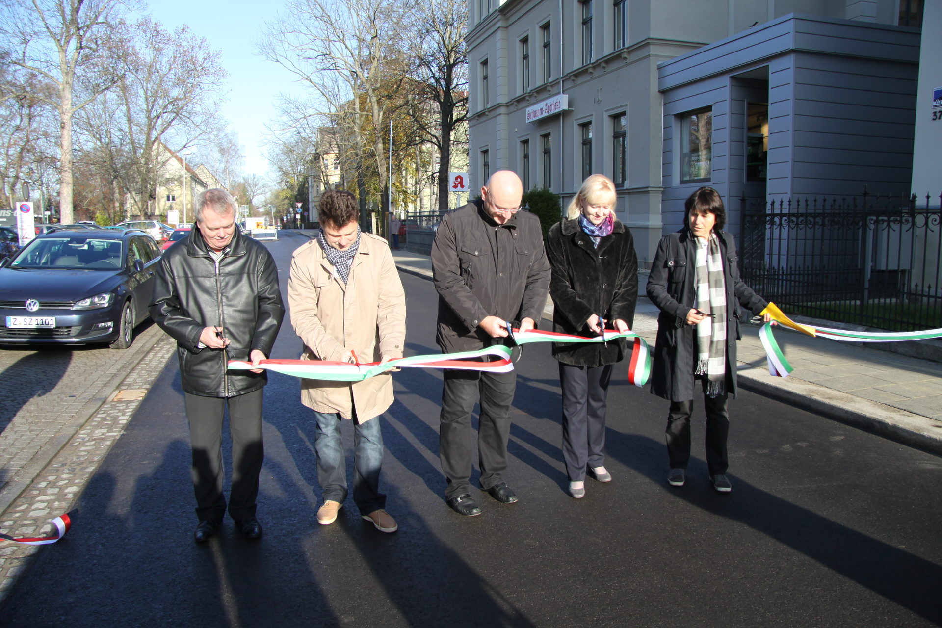 Am heutigen Dienstag gab Oberbürgermeisterin Dr. Pia Findeiß gemeinsam mit Vertretern aus Politik und Verwaltung sowie der Bau- und Planungsfirmen die Lothar-Streit-Straße wieder für den Verkehr frei. Innerhalb von 16 Monaten und damit termingerecht wurde die Straße grundhaft saniert und ein Ersatz für die Brücke über den Planitzbach gebaut. Die Kosten liegen mit rund 900.000 Euro innerhalb des geplanten Budgets.