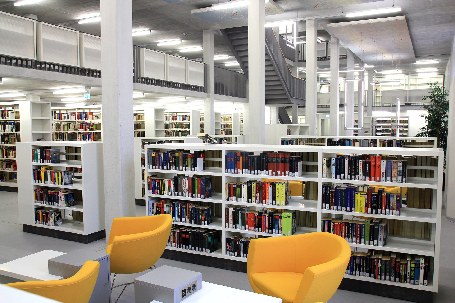 Mit der „neuen" Bibliothek wurde auch das RFID-System (radio-frequency identification) eingeführt. Sämtliche Medien wurden mit einem Funkchip ausgestattet. Nutzer können Medien nun selbstständig ausleihen und zurückgeben. Dazu stehen im Eingangsbereich zwei „Selbstverbuchungsautomaten" zur Ausleihe und ein Rückgabeautomat zur Verfügung. Neben dem Haupteingang befindet sich ein zusätzlicher Außenrückgabeautomat, an dem die Möglichkeit besteht, Medien rund um die Uhr abgeben zu können. Für alle Nutzer beträgt die Jahresgebühr lediglich 10 Euro, Kinder und Jugendliche bis zum vollendeten 16. Lebensjahr können die Bibliothek kostenlos nutzen.