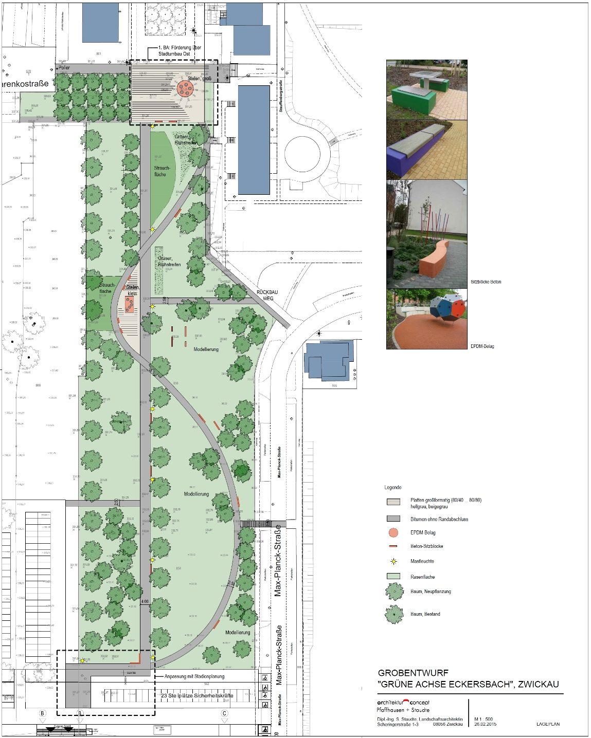 Drei Beschlussvorlagen stehen auf der Tagesordnung der Finanzausschusssitzung am Dienstag, dem 21. April. Im Lothar-Streit-Raum des Rathauses beschäftigen sich die Stadträte zunächst mit Zuschüssen für Rückbaumaßnahmen in Eckersbach. Daran schließt sich der Vorhabensbeschluss zur Erweiterung des Wohngebietsparks in Eckersbach an. 2015 soll der ehemalige Marktplatz in Eckersbach E 5 für 374.000 Euro begrünt und neu gestaltet werden. Überplanmäßige Mittel werden schließlich für den 1. Abschnitt der Bau- und Erschließungsstraße zur neuen JVA benötigt.