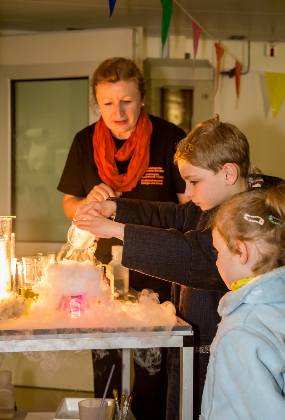 Anfassen ist am 24. April auch in der Maschinenhalle der Fakultät Automobil- und Maschinenbau erlaubt. Außerdem kann man seine Einarbeitungszeit an Montagearbeitsplätzen testen, im Kerzenschein Teelichthalter schweißen und leuchtende Textilien und Roboter in Aktion erleben. Die Informatiker lassen Drohnen fliegen und zu erleben sind ebenfalls das WHZ-Racing-Team und ferngesteuerte Mini-Autos. Auf dem Technikum-Gelände sorgt außerdem der Auftritt des Gebärdensprachchor der WHZ für ein besonderes Highlight. Eine Lasershow und Gaukeleien mit Feuer runden die Veranstaltung ab.