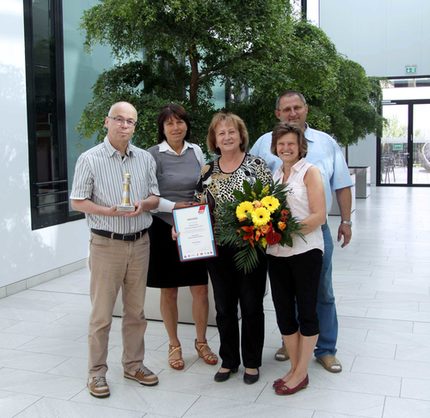 Am vergangenen Mittwoch, 8. Juli konnten Christine Trommer, Vorsitzende des Personalrates (Bildmitte) und weitere Personalratsmitglieder während einer Festveranstaltung in Leipzig den Preis, einen Pokal und eine Urkunde entgegennehmen. Heute teilten sie sich noch einmal die Freude über die Auszeichnung mit Oberbürgermeisterin Dr. Pia Findeiß, die zum gemeinsamen Erfolg gratulierte.