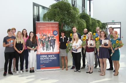 Die ehemaligen Auszubildenden erhielten ihre qualifizierten Ausbildungszeugnisse und Einschätzungen über ihr soziales Verhalten, ihre Leistungsfähigkeit und Fachkompetenz während der gesamten Ausbildungszeit. Bei den Absolventen handelt es sich um fünf Verwaltungsfachangestellte, die nun in den Bereichen Bürgerservice, Bauplanungsamt, Garten- und Friedhofsamt sowie Liegenschafts- und Hochbauamt eingesetzt werden. Zwei Gärtner werden im Betriebshof Pöhlau sowie am Schwanenteich arbeiten und ein Straßenwärter auf dem Bauhof. Die Studentin (Bachelor of Laws) erhält ihre Prüfungsergebnisse erst Ende September und wird danach im Bauplanungsamt eingesetzt.