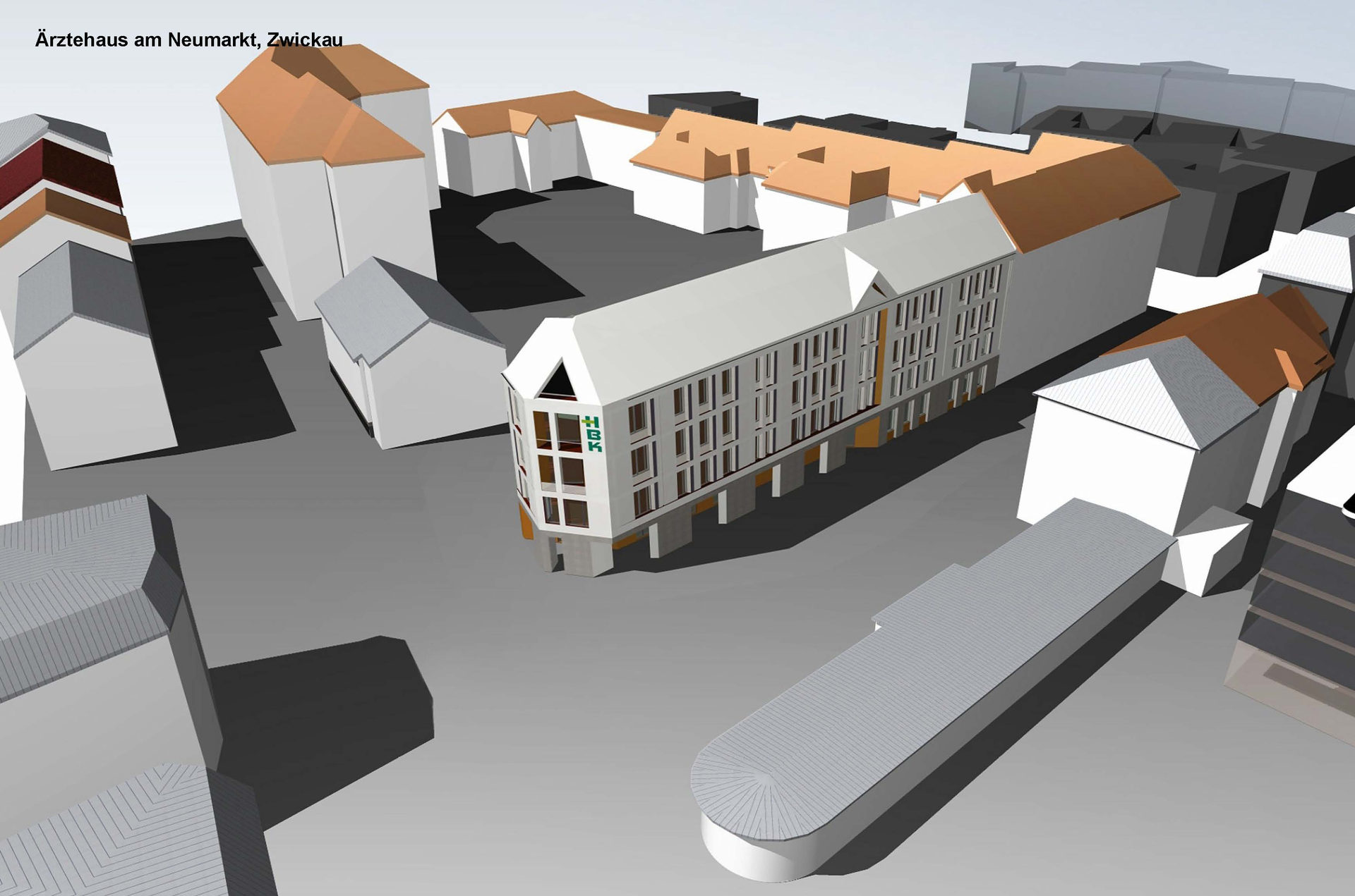 Das neue Ärztehaus ist ausschließlich für den Eigenbedarf der HBK-Poliklinik gemeinnützige GmbH vorgesehen. Diese ist bereits Träger mehrerer über die Stadt Zwickau verteilter Medizinischer Versorgungszentren, die dann an dem neuen Standort vereint werden sollen. Rund um einen zentralen Kern mit Fahrstühlen und Treppenaufgang sind auf einer Gebäudeseite vier Einzelpraxen, auf der anderen Seite vier Gemeinschaftspraxen geplant. In dem neuen Ärztehaus sollen die Praxen des MVZ Polimed (Werdauer Straße) sowie MVZ Mitte (Schumannplatz) gebündelt werden.
