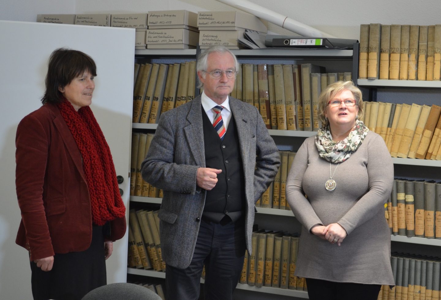 Bei der Übergabe: Oberbürgermeisterin Dr. Pia Findeiß, Dr. Rüdiger Fikentscher und Silva Teichert, die Leiterin des Stadtarchivs.