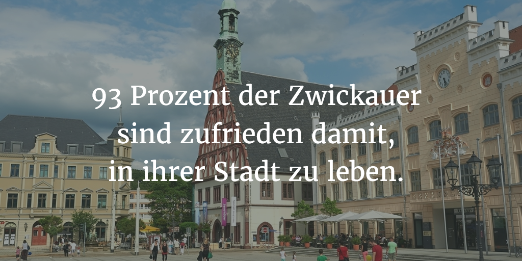 93 Prozent der Zwickauer sind zufrieden damit, in ihrer Stadt zu leben, genauso viele sind mit ihrem persönlichen Leben zufrieden. Kontinuierlich verbessert hat sich außerdem der Eindruck von der Arbeit der Stadtverwaltung. Kritisch sehen die Befragten die Integration von Ausländern und die Sicherheit in der Nacht. Diese und weitere Ergebnisse brachte die Befragung zur Lebensqualität in deutschen Städten zutage, an der sich Zwickau nach 2009 und 2012 erneut beteiligte.