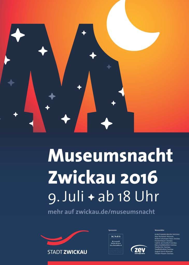 Unterstützt wird die Museumnacht von der Zwickauer Energieversorgung GmbH (ZEV) und der Kanzlei KMS Krauß•Mäckler•Schöffel. Weitere Informationen sind im Internet unter www.zwickau.de/museumsnacht erhältlich.