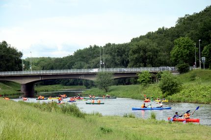 Nein, hier handelt es sich nicht um eine Regatta - vielmehr um jede Menge ausgelassenen Paddel-Spaß auf der Zwickauer Mulde, den am Nachmittag des 31. Mai vor allem rund 80 junge Asylbewerberinnen und Asylbewerber erlebten.