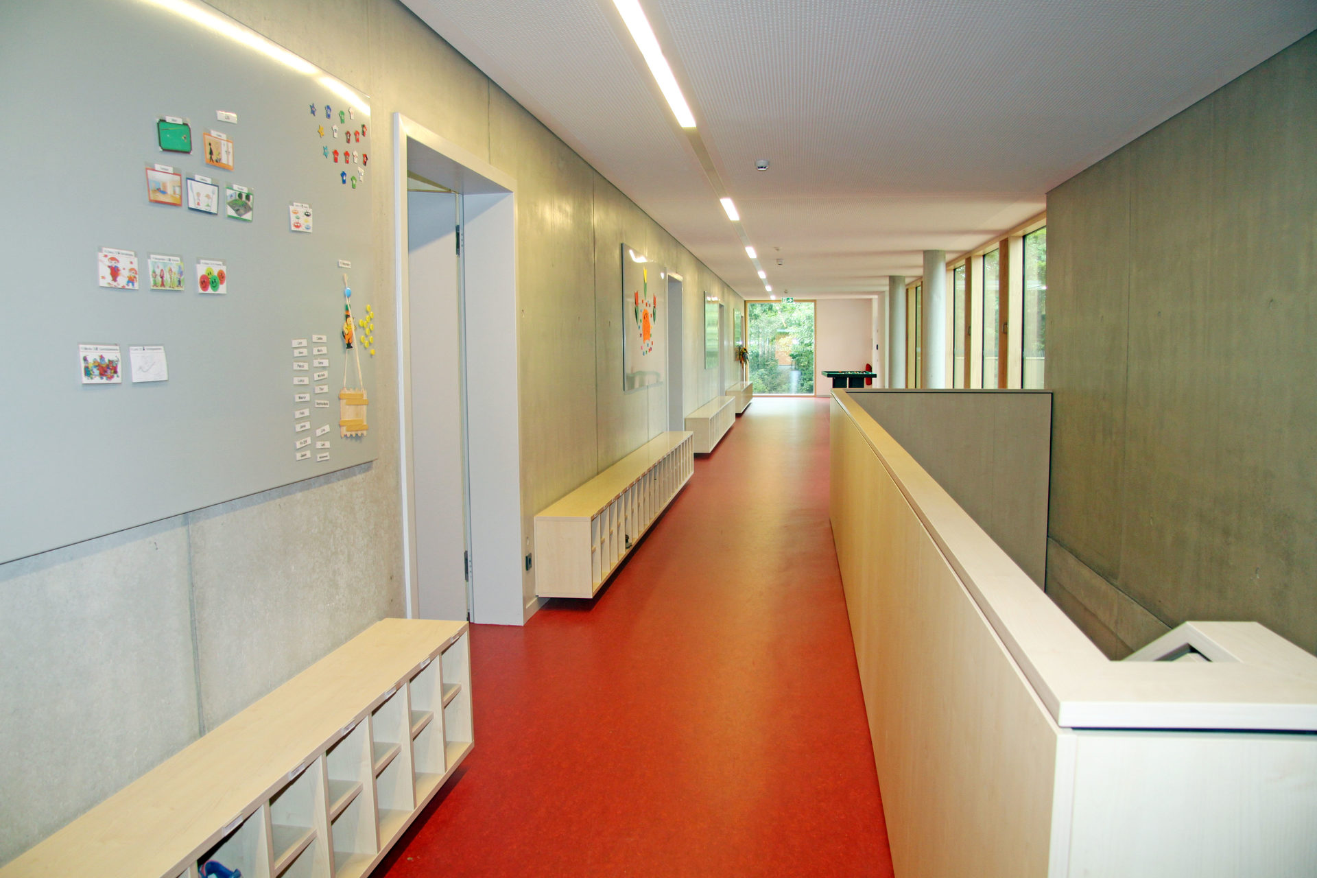 Für das leibliche Wohl der Kinder gibt’s es eine moderne Ausgabeküche. Für die Hortleitung und Mitarbeiter stehen entsprechende Büro- bzw. Personalräume zur Verfügung. Komplettiert wird der Hort mit WC- Räumen, einer Dusche und den erforderlichen Technikräumen.