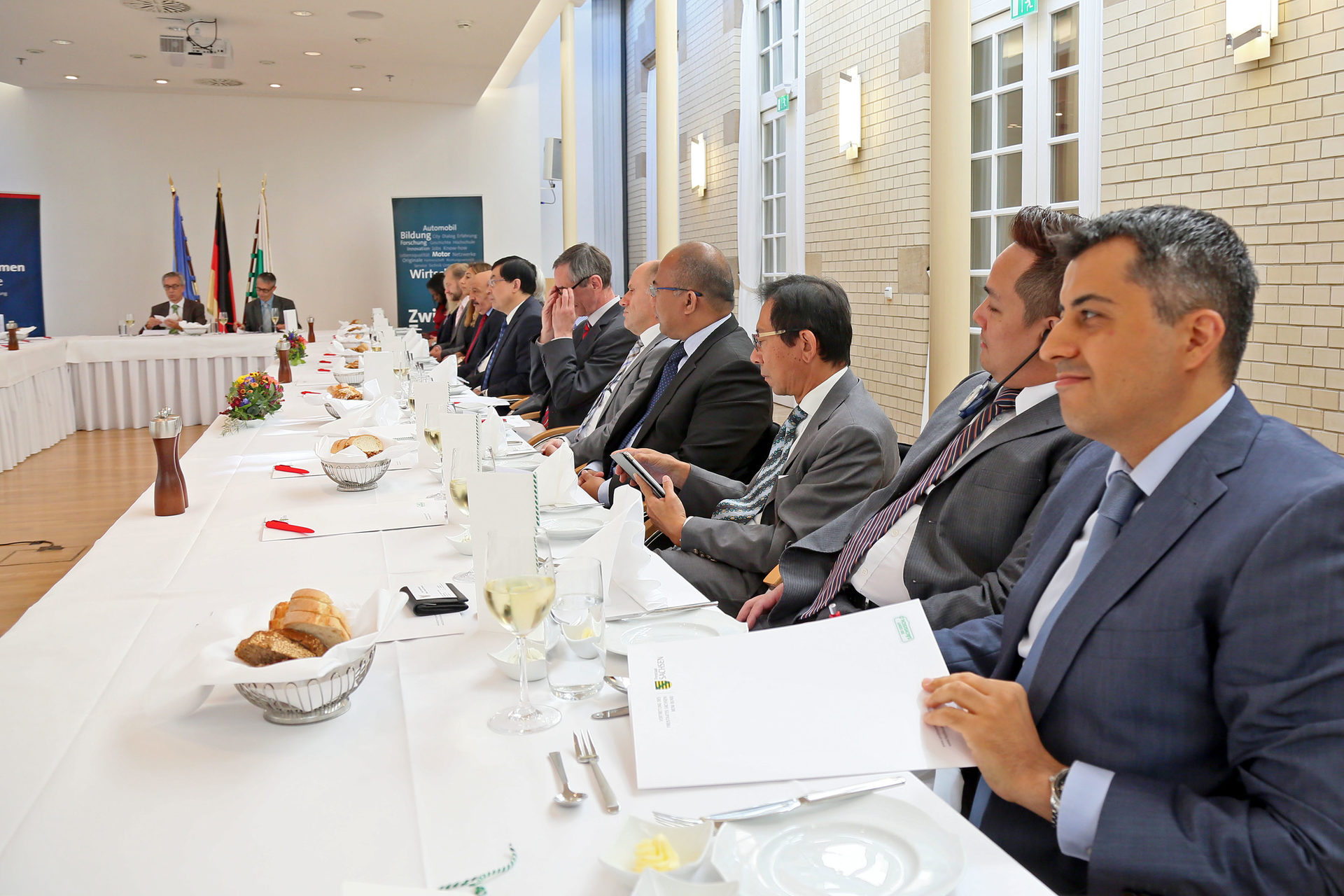 Die Vorstellung Zwickaus und der Region konnte schließlich in persönlichen Gesprächen vertieft werden. An dem „Lunch“ in der Vertretung des Freistaates beim Bund nahmen Botschaftsvertreter u. a. aus Belgien, Thailand, der Volksrepublik China, Frankreich, Portugal, Bulgarien, Indonesien, Kosovo, Lettland, Litauen, Namibia, Serbien und Ungarn sowie Vertreter des Unternehmerverbandes e. V. der Türkisch-Deutschen Industrie- und Handwerkskammer und der Taipeh Vertretung in der Bundesrepublik Deutschland teil.