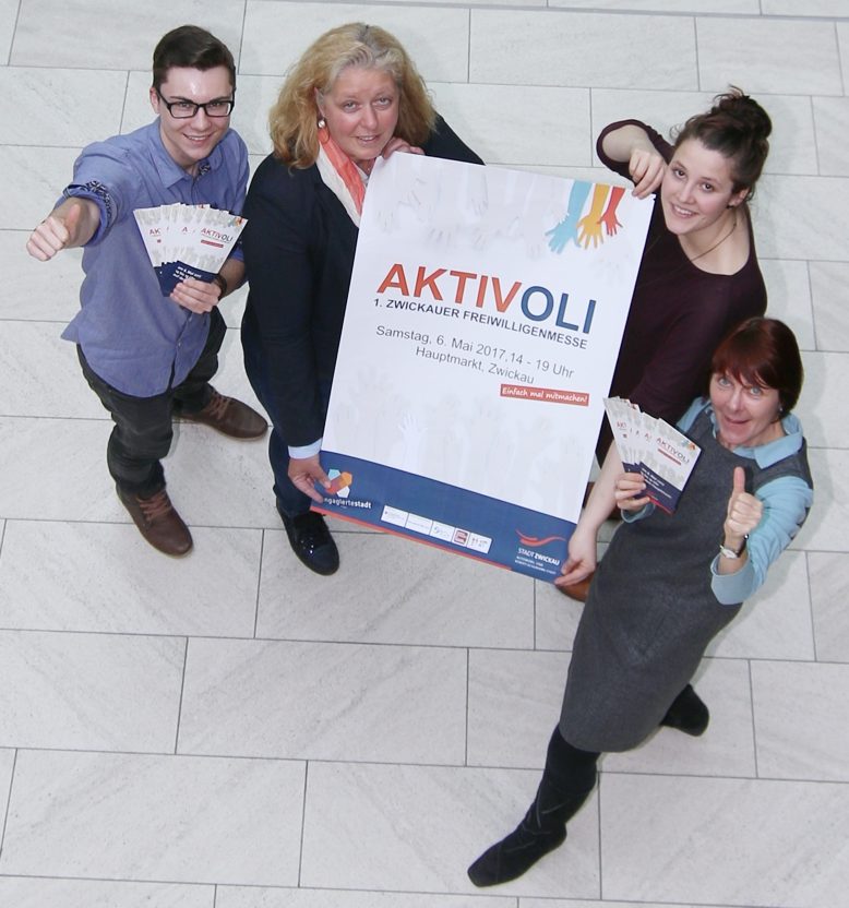 „Einfach mal mitmachen“ heißt es am Samstag, 6. Mai 2017 zur 1. Freiwilligenmesse AKTIVOLI auf dem Zwickauer Hauptmarkt. In der Zeit von 14 bis 19 Uhr werden sich mehr als 50 Vereine, Wohlfahrtsverbände, Organisationen, Initiativen und sonstigen Träger in und um Zwickau gemeinsam dem Thema Freiwilligenengagement bzw. Ehrenamt widmen.