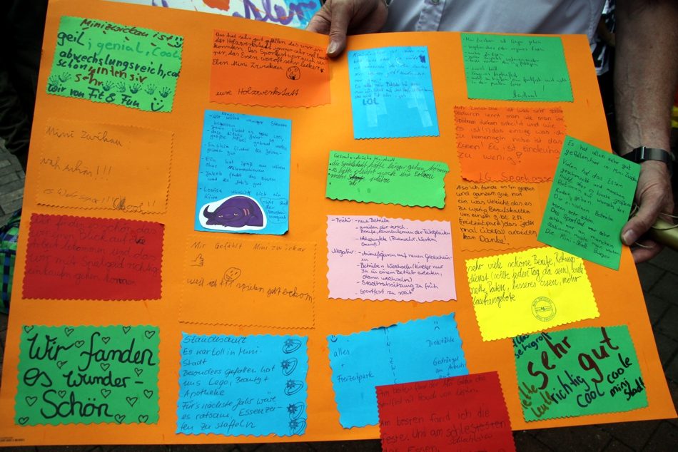 Bei hochsommerlichen Temperaturen, dem einen oder anderen Regenschauer, aber vor allem mit vielen schönen Erlebnissen, tollen Erfahrungen, neuen Freunden und so mancher Träne im Auge ging heute die Spielstadt Nr. 12 zu Ende. Die Bürgerinnen und Bürger wie auch alle Paten hatten sich so richtig ins Zeug gelegt und präsentierten zu ihrem Stadtfest noch einmal in abwechslungsreicher Vielfalt, was sie in Mini Zwickau gelernt, gewerkelt, gebacken, kreiert, einstudiert oder genäht haben.