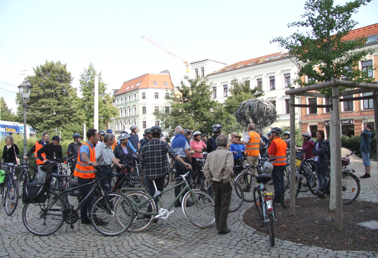 Zunächst ging es durch die Hauptstraße in Richtung Norden bis zum Radweg am August Horch Museum. Wichtige Themen in diesem Abschnitt waren die Querung des Dr.-Friedrichs-Ringes, die Erreichbarkeit der Innenstadt aus nördlicher Richtung und die sichere Querung der Kolpingstraße im Bereich des Finanzamtes. Dabei spielte auch die Öffnung der Einbahnstraßen für Radfahrer eine Rolle.