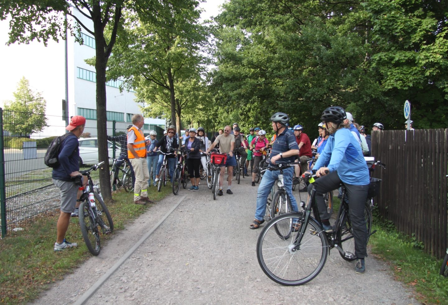 Am Straßenzug Heckenweg, Querung Goethestraße/Julius-Seifert Straße machten die Teilnehmer den nächsten Halt. An dieser Stelle gab es durch den Radverkehrsplaner der Stadt Zwickau, Ulrich Skaruppe die Empfehlung eine Fahrradstraße auszuweisen. Über die Jakobstraße fuhr man weiter zur Bülaustraße, über die alte Lehmbahnstrecke und den ehemaligen Sportplatz zum Südblick und durch die Gartenanlage zur neuen Zufahrt der Justizvollzugsanstalt (JVA).