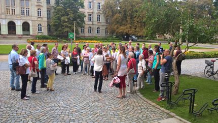 Bei bestem Wetter wurden am 24. August in zwei Stunden wichtige Ziele zwischen Stadtzentrum, Schwanenteich, Zentralhaltestelle, Moritzstraße, Neumarkt, Gasometer und Schloss Ostersten angesteuert. An jedem Haltepunkt gab es Informationen und Diskussionen und auch während des Spazierganges gab es eine Vielzahl Gespräche unter den Teilnehmern.