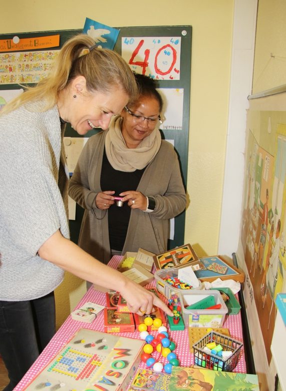 Freudig-quirlige Kinder und ein motiviertes Erzieherteam begrüßten heutige Vormittag Gäste aus der Verwaltung und der Beschäftigungsförderung Zwickau gGmbH zu einer amüsant-unterhaltsamen Feierstunde in ihrem festlich geschmückten Haus. Neben Kaffee und Kuchen, einer Stippvisite in der „Kinderdisco“ mit Hüpfburg, Daumendrücken am Glücksrad und einem Rundgang gab es ein besonderes Highlight mit Schmunzel- und Erinnerungseffekt: ein eigens fürs Jubiläum eingerichtetes Nostalgiezimmer! Hierfür hatten sich Eltern und Erzieher in den vergangenen Wochen mächtig ins Zeug gelegt, um reichlich Kita relevante Zeitzeugnisse zusammen zu bekommen. Entstanden ist ein buntes Sammelsurium an alten Spielzeugen, Bildern und Schriften, welches - anschaulich kombiniert - von längst vergangenen Tagen, schönen und auch bewegten Zeiten erzählt. Nach einem Blick in die Fibel, 3-D-Bilder schauen oder Blumen stecken wusste auch fast jeder der Gäste von eigenen, zum Teil amüsanten Kindheitserlebnissen zu berichten.