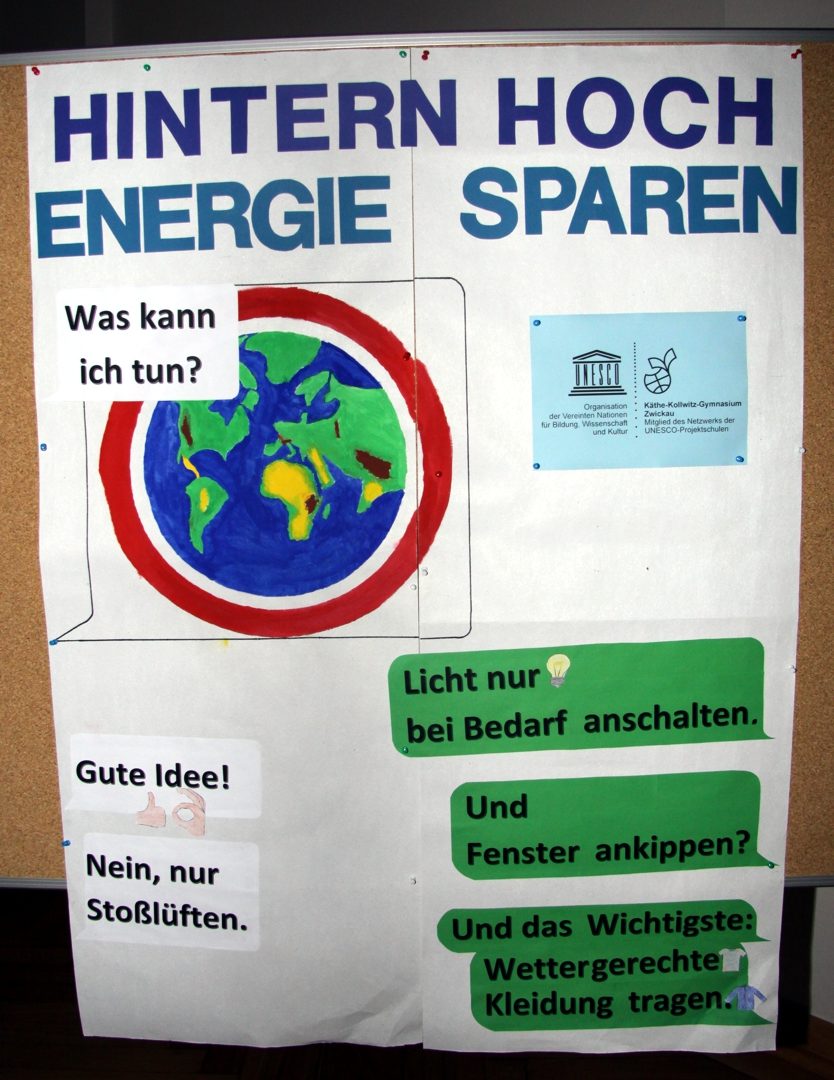 Stoßlüften im Klassenzimmer, Einsatz von Energiesparlampen im Schulhaus, Raumklima optimiertes Heizen der Klassenzimmer, sparsamerer Wasserverbrauch und Einsatz von Bewegungsmeldern in den Sanitärbereichen – all das sind bereits Überlegungen, mit denen sich die Lehrer, Schülerinnen und Schüler der Klassen 9 und 10 im Käthe-Kollwitz-Gymnasium (KKG) auseinandersetzen. Anstoß dazu gab das Projekt „Energiesparschule“ der Sächsischen Energieagentur SAENA, an dem sich die Schule seit Schuljahresbeginn 2016/17 aktiv beteiligt. Laut SAENA können allein durch verändertes Nutzerverhalten an Schulen im Durchschnitt jährlich bis zu 10 Prozent der Energiekosten in Kommunen eingespart werden.