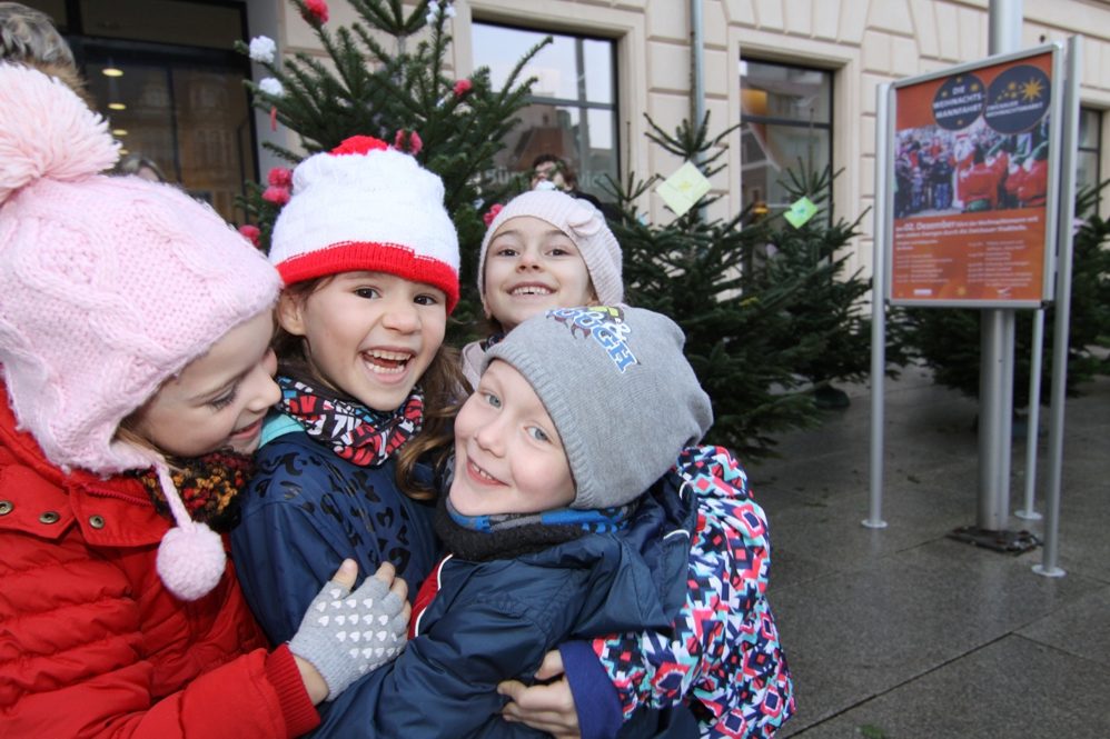 Mit Freude bei der Sache: die Kinder beim Weihnachtsbaumschmücken