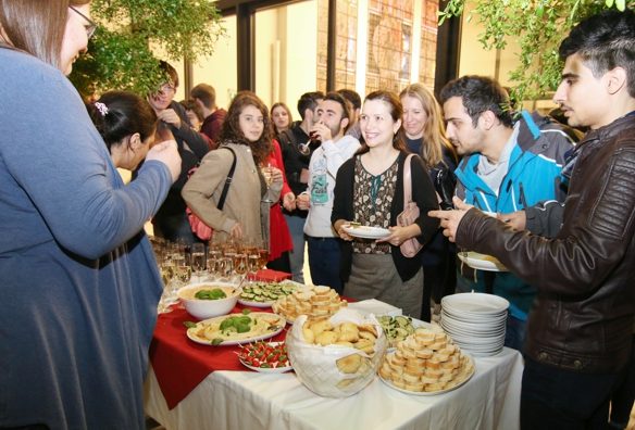 So international wie die Gäste war auch das kleine Catering im Anschluss des offiziellen Teils. Über das Projekt „Kochen verbindet“ hatten die Gleichstellungs-, Ausländer- und Integrationsbeauftragte und die Integrationsberatungsstelle Zwickau für das leibliche Wohl gesorgt und einige internationale Speisen vorbereitet. Deren Vielfalt reichte von Mediterranem, über typisch arabische, orientalische Speisen, wie Hummus (Kichererbsen-Dip mit Fladenbrot) und Ma´amoul (Backware mit Pistazien- oder Dattelfüllung), was bei den jungen Menschen sehr gut ankam.