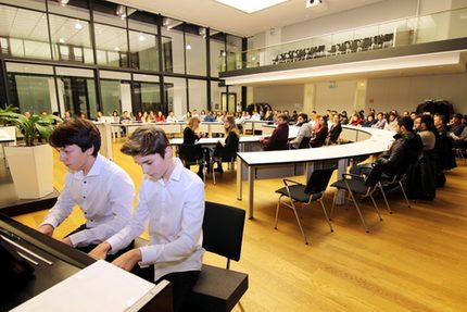 Musikalisch begleitet wurde der feierliche Empfang von Noah Kretzschmar und Constantin Päßler, zwei Musikschüler des Robert-Schumann-Konservatoriums.