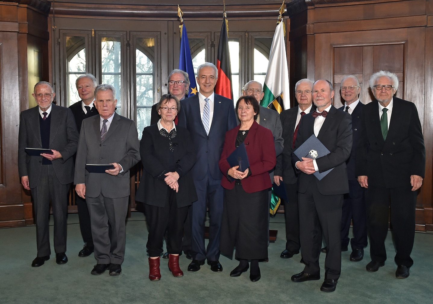 Mit dem Verdienstorden der Bundesrepublik Deutschland ist gestern Erwin Killat geehrtworden. Die hohe Auszeichnung erhielt der 84-Jährige aus den Händen von Ministerpräsident Stanislaw Tillich, der die Übergabe stellvertretend für Bundespräsident Frank-Walter Steinmeier vornahm. Mit Killat wurden bei der Feierstunde in der Sächsischen Staatskanzlei zehn weitere Persönlichkeiten aus dem Freistaat mit dem Verdienstorden gewürdigt.