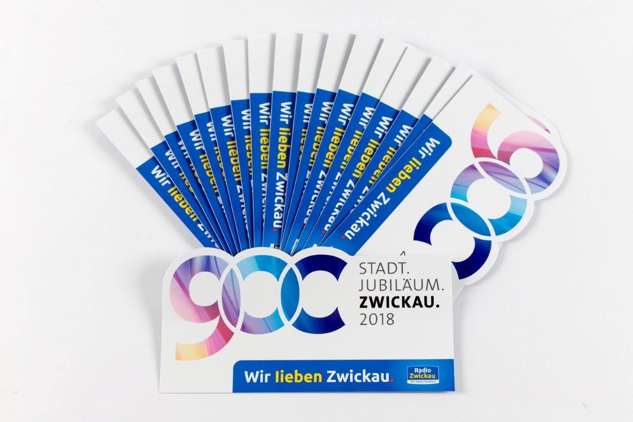 Für Zwickau und das Stadtjubiläum werben und, mit etwas Glück, einen neuen VW up gewinnen ‑ das Sticker Picker Spezial von Radio Zwickau macht dies möglich! Vom Dienstag, dem 13. Februar an sind die Auto-Aufkleber unter anderem in den städtischen Museen erhältlich. Ab 26. März werden auf den Straßen Fahrzeuge mit dem Aufkleber „herausgepickt“. Die Verlosung des Up findet in der Festwoche „900 Jahre Zwickau“ am Samstag, dem 5. Mai auf dem Hauptmarkt statt.
