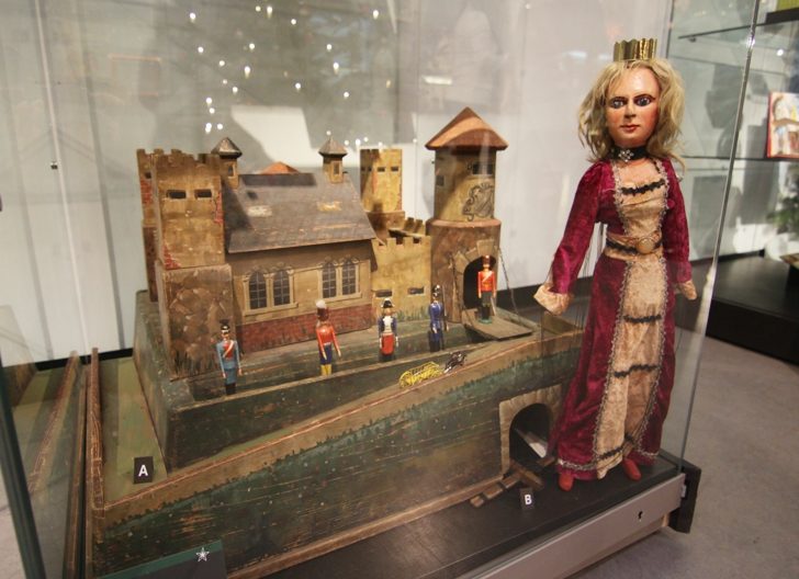 Die ältesten Ausstellungsobjekte sind über 120 Jahre alte, fantasievolle Papiertheaterfiguren. Mit der Verbreitung des Papiertheaters im 19. Jahrhundert konnten Kinder ihre Lieblingsmärchen mit Figuren aus Papier und passenden Textbüchern zu Hause aufführen. Dazu wurden die Papiertheaterfiguren aus Druckbögen ausgeschnitten, mit Pappe verstärkt und mit einem Draht zum Bewegen der Figuren versehen.