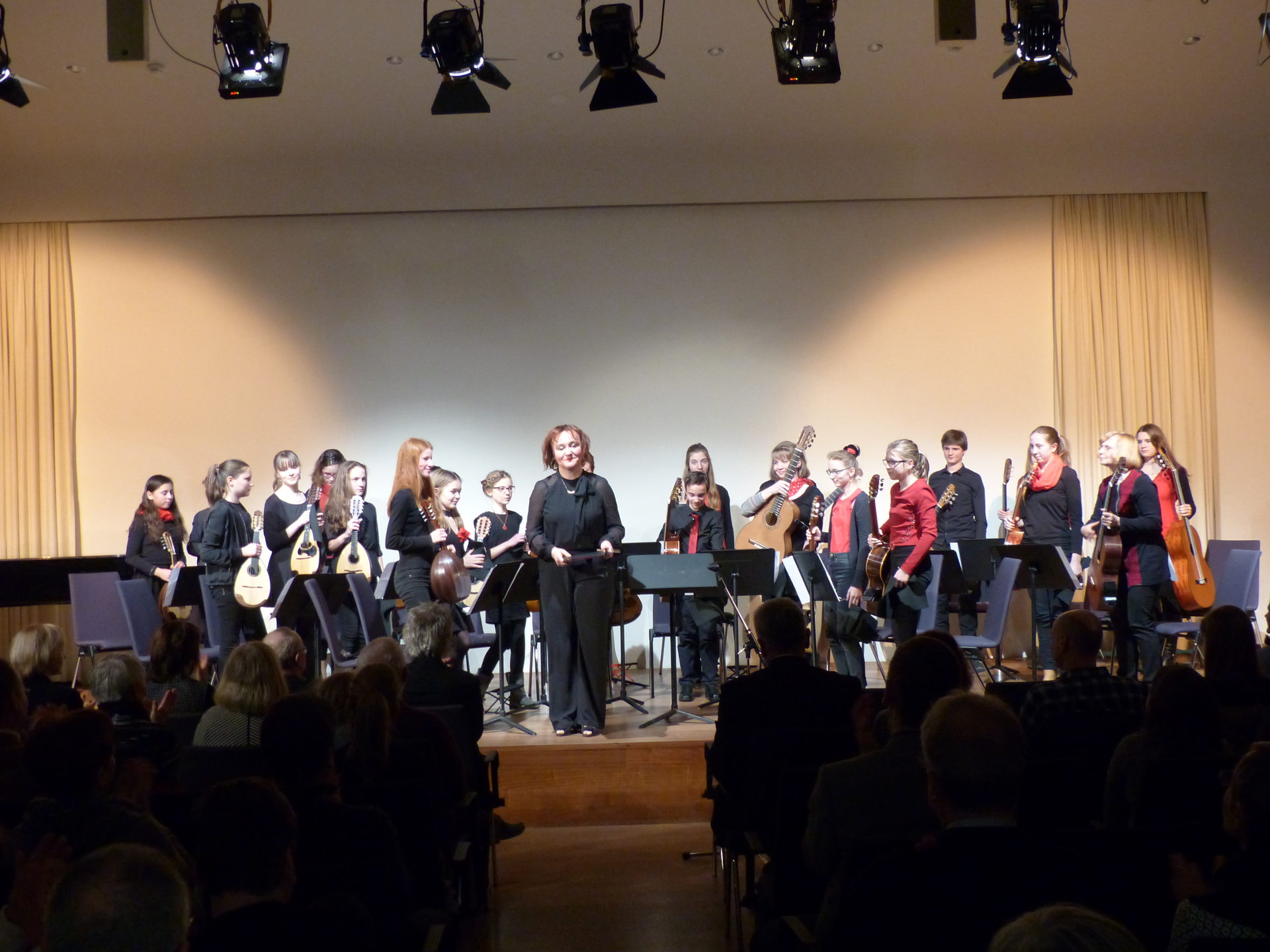 Mit dabei war und ist Annette Schneider, ehemals Spielerin in der 1. Mandoline, heute Orchesterleiterin. Unter ihrer Leitung wird auch das Jubiläumskonzert stehen. Die Solisten sind Katja Wolf (Gitarre), ehemalige Schülerin und seit Beginn des Schuljahres Kollegin, Paulin Suda (Mandoline) und Liddy Bachmann (Gesang). Janne Julius Schneider wird „Lightshow“, eine Komposition der Dirigentin, mit Lichteffekten ausleuchten. Besonders spannend ist der Konzertort, das Straßenbahndepot in Pölbitz (Städtische Verkehrsbetriebe Zwickau GmbH, Schlachthofstraße 12), wo an diesem Tag Musik auf Technik trifft und Bewegung symbolisiert. Dabei erklingen barocke, klassische, traditionelle, elegante, junge und moderne Werke von J. A. Hasse, F. Carulli, W. A. Mozart, O. Kälberer, E. Fietz, A. Schneider und V. Preema/H. Zimmer.