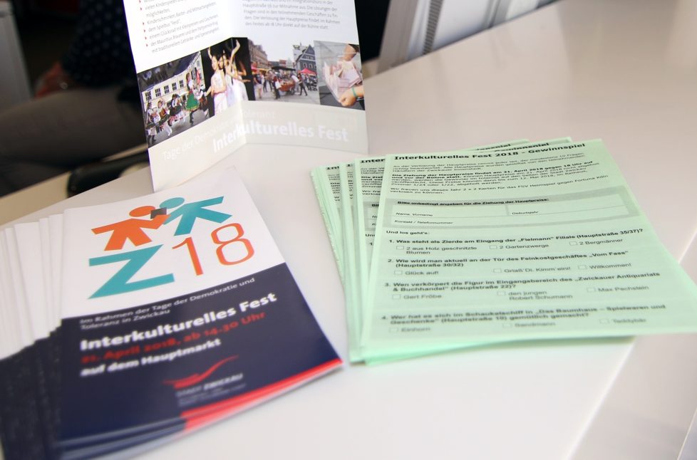 Seit heute liegen sie aus – die kleinen A-5-Bögen mit 12 Quiz-Fragen rund um die Zwickauer Innenstadthändler, deren Angebote und Schaufenster-Dekos. Sie gehören zur Tombola für Jedermann, die es aufgrund guter Erfahrungen im Vorjahr auch zur dritten Auflage des Interkulturellen Festes am 21. April 2018 auf dem Hauptmarkt geben wird.