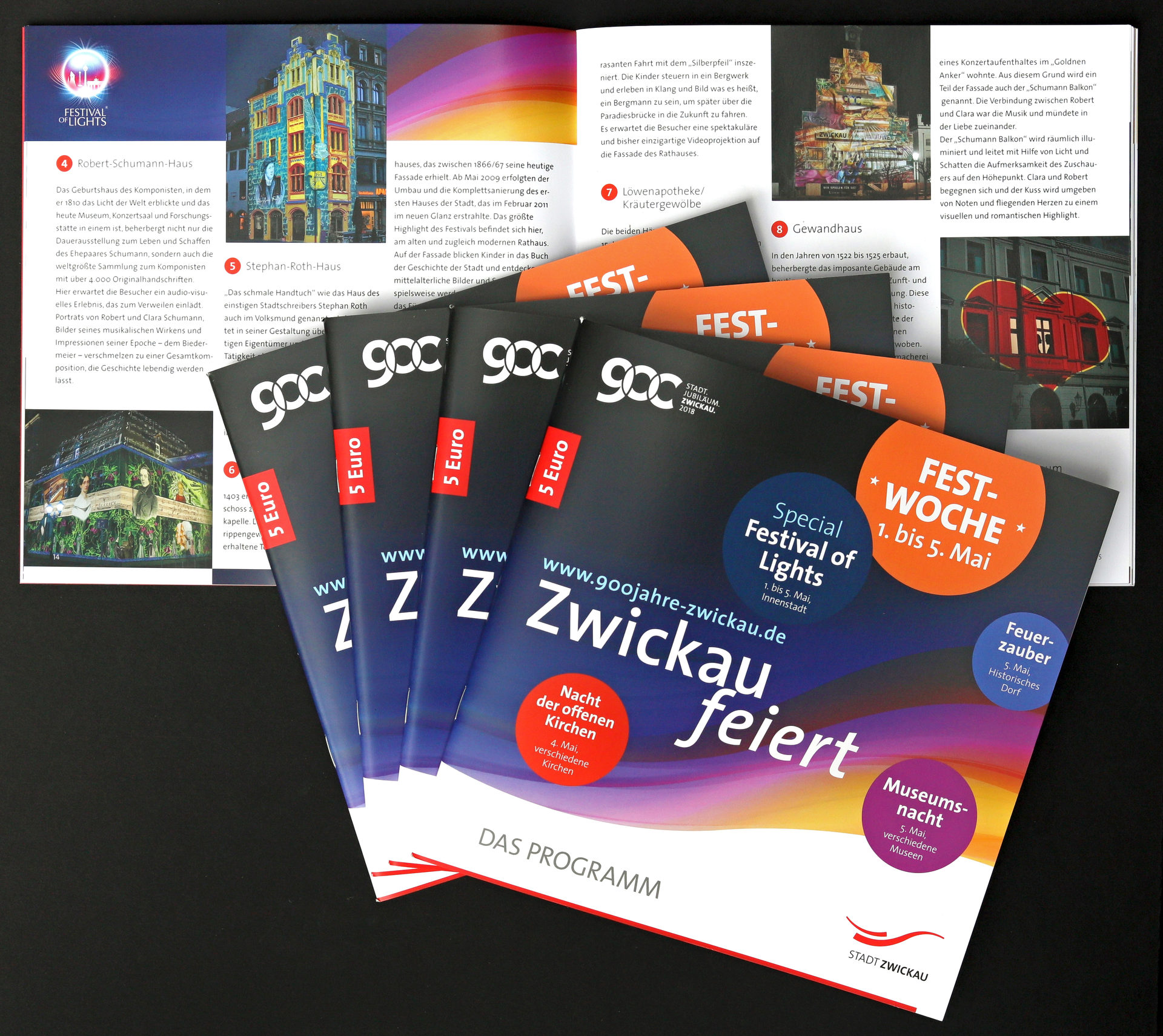 Das Programmquadrat zur Festwoche ist eine Gemeinschaftsproduktion des Kulturamtes und des Pressebüros der Stadt Zwickau sowie der Firma ö_konzept, die auch generell das Corporate Design des Festjahres entwickelt hat. Ein Zwickauer Traditionsunternehmen übernahm den Druck der 6.000 Festbroschüren: Die 1881 als Familienunternehmen gegründete Druckerei Förster & Borries.
