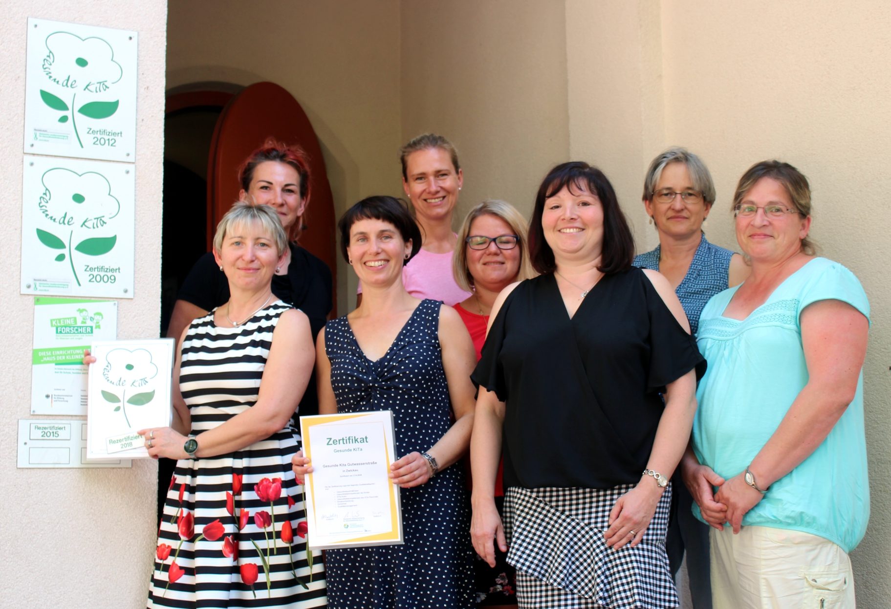 Die Einrichtung wurde 2009 erstmals als „Gesunde KiTa“ ausgezeichnet. Der eingeschlagene Weg wurde erfolgreich fortgesetzt: 2012 erfolgte die erste Rezertifizierung und 2015 die zweite. Heute bewies die Kita, dass sie sich weiterentwickelt hat und dem Titel abermals gerecht wird.
