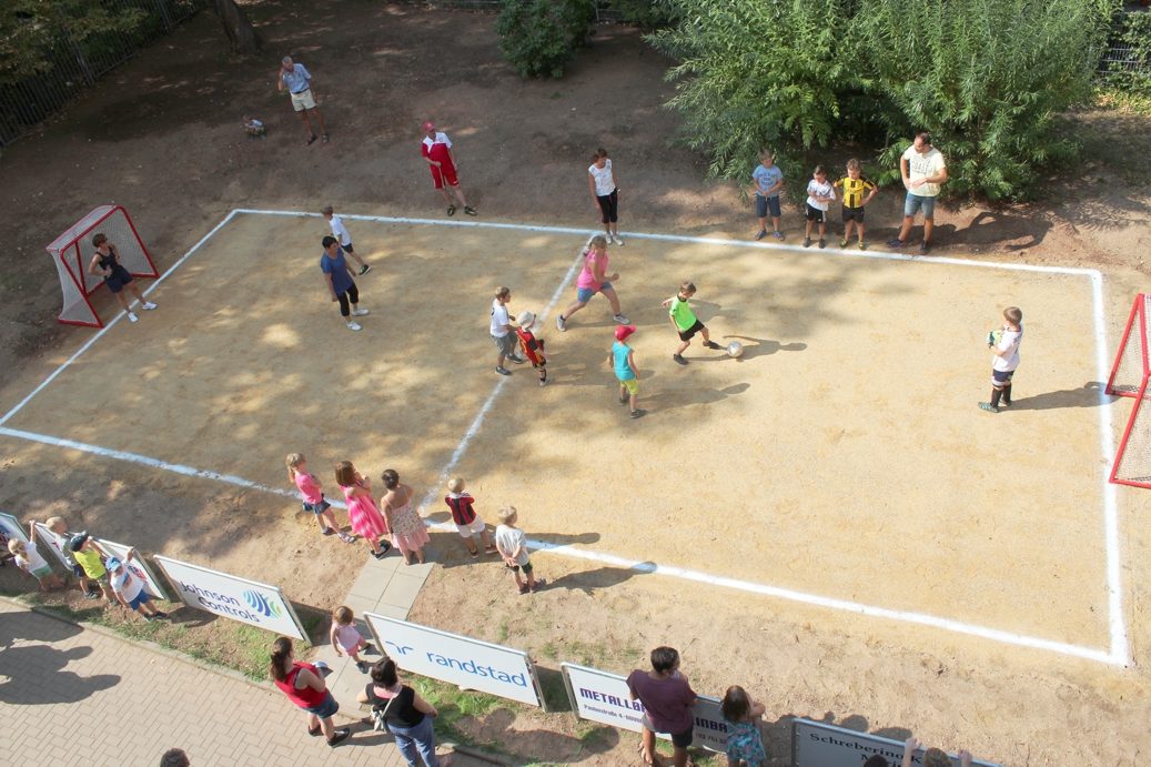 Der Bolzplatz steht zunächst hauptsächlich den 60 Hortkindern zum Fußballspielen zu Verfügung. Zukünftig soll er auch anderweitig genutzt werden, eventuell für Volley- und Basketballspiele, kleine Kita-Sportfeste und eine Cheerleader-Gruppe.